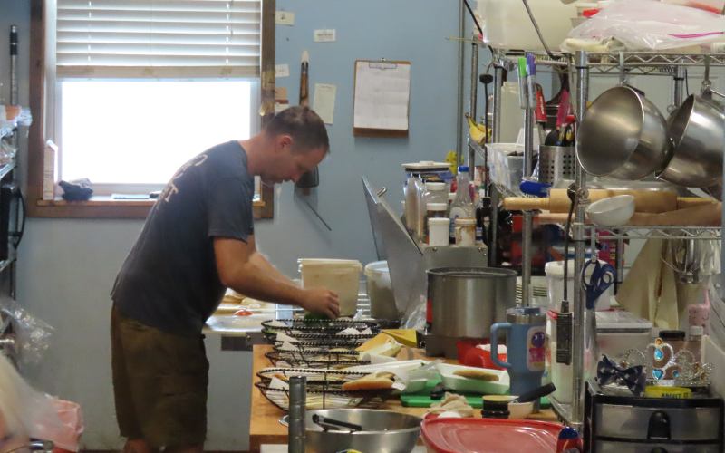 Aunt Netters Cafe - Lecompton, Kansas Aunt Netters Cafe in Lecompton, Kansas is a breakfast and lunch restaurant, serving supper only on Friday. The food is good, but it is on this list of unique Kansas restaurants, because of the wonderful pies. Jamin and Annette Nally started Aunt Netters in 2014. Jamin is the chef and Annette is a school teacher who does the baking in the afternoon or evening, She bakes cup cakes, cinnamon rolls, cookies and pies. In 2025, pie is just $3,50/slice, plus $.50 for a la mode. Whole pies must be ordered two days in advance and are $20. So far we have had the chocolate peanut butter, Dutch apple, cherry and caramel apple pecan. All have been fabulous and we couldn't agree on which one was best. The chocolate peanut butter is rich and the chocolate is not runny, The whipped cream on the chocolate peanut butter pie has something extra, maybe cream cheese? It is tipped with bits of peanut butter cup. So far we have only sampled lunch. The fried catfish was pretty straight forward and we liked the fresh cut fries. The burger was good and grilled onions and jalapenos are a nice option. You order at the counter and the meal is brought to your table. Meal prices are very reasonable. Sandwiches start at $4.99.