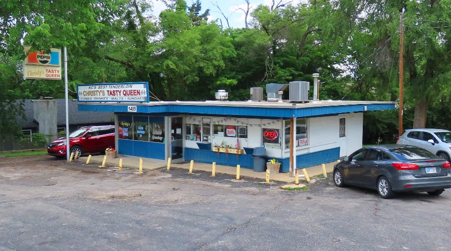 Christy's Tasty Queen - Kansas City, Kansas Christy's Tasty Queen in the Turner District of Kansas City, Kansas has take out only. Other than some outdoor picnic tables, there is no place to sit or eat. On the cool October day that we were first there, most people were eating in their cars. The local burger joint is justifiably famous for its pork tenderloins. The large pork tenderloin is the best that I have had anywhere in the Kansas City metropolitan area. It has a a crispy, delicious coating while the pork is tender, with a good flavor. This is a big sandwich, sticking out from the large 5" bun in every direction and about 1/3" thick. A grilled tenderloin is also available. The side dishes aren't fresh made, but the fried mushrooms were good and the onion rings were very good. The cheeseburger was just ordinary. Although this isn't fast food, the kitchen at Christy's Tasty Queen is very quick. On our last visit, the cook apologized that the pork tenderloin hadn't cooked up quite right. She cooked a second one, but the food was still ready in just a few minutes. This restaurant has had the Christy's name since 1983. It started as Carter's Tasty Queen in the 1960s.
