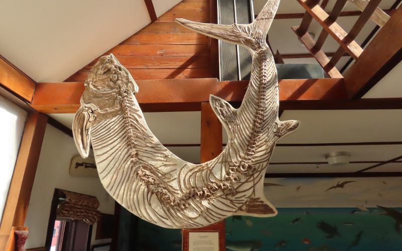 Keystone Galley - Scott City, Kansas. Located in the 1916 Pilgrim Holiness Church, the Keystone Gallery north of Scott City, Kansas is a combination of art gallery, fossil museum and souvenir shop. The Gallery is owned by Barbara Shelton & Chuck Bonner, and the art of Chuck and their son, Logan, is exhibited in the Gallery. The Bonner family has collected many of the fossils which are on exhibit or offered for sale at the Keystone Gallery. Many of the family's fossil finds are in major galleries. The Keystone Gallery is "off the grid," generating its power from solar and wind. The Bonner family has been fossil hunting since 1928 and used to lead fossil hunting & camping tours in a 1948 Chevy Suburban. They can still direct you to the Monument Rocks, Little Pyramids, and other unique rock formations in the area. If you are interested in geology, fossils or arts and crafts, I highly recommend visiting the Keystone Gallery. Keystone Gallery hours: 9AM to sunset, but not everyday. Call for an appointment or take a chance and stop when passing by.