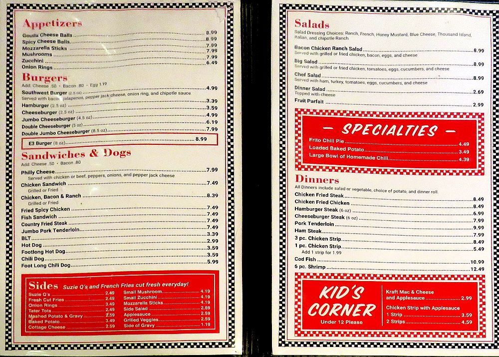 Nu Grille Cafe - Fort Scott, Kansas The Nu Grille Cafe restaurant in Fort Scott, Kansas is the kind of classic place and food that I am always looking for. Nu Grill opened in 1946. The front room has a nice old counter where you can watch the food prepared and there are three additional dining areas. The made to order cheeseburgers with grilled onions are good, but I particularly enjoy the Nu Grille's homemade onion rings and French fries. And the food is cheap! The chili is another good choice, they use an all meat chili for Coney Islands, but layer it above the beans in the bowl of chili. A limited breakfast menu, including fresh made hash brown potatoes, is served until 11AM daily at Bowman's Nu-Grille Cafe.