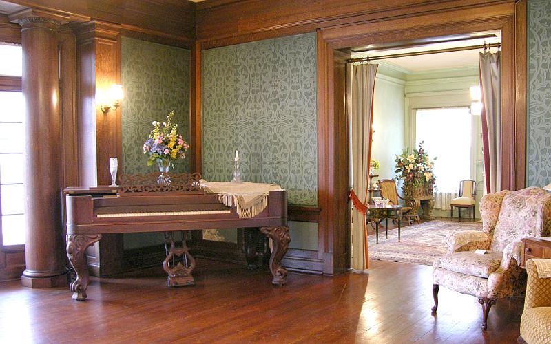 Brown Mansion - Coffeyville, Kansas The Brown Mansion in Coffeyville, Kansas makes quite an impression. Completed in 1904, the three story 16 room Mansion was built at a cost of $125,000. It was far ahead of its time and had features like an alarm system, elevator, and a walk-in ice box. The home was built by W.P. Brown, a businessman who moved to Coffeyville from Ohio in 1890. He first started a lumber company, but discovered one of the largest natural gas wells in the country. He then founded the Coffeyville Mining and Gas Company and owned several other businesses including a 40 acre amusement park and a Natatoirum (spa). The mansion was designed by Edward Wilder and Thomas Wight, who studied with Stanford White, and the house shares features with several of the famous homes that White designed. Some features of the home (such as the height of the steps) were designed to accommodate Brown's petite wife, Nancy, who was only 4'11". The Browns had three children who survived birth - William, who lived to age 4; Donald who died at age 11 on November 11, 1911 (11/11/11); and Violet. Violet Elizabeth Brown married at age 19, but divorced shortly after their only child died. She married a second time and divorced, went to college and became a librarian. In the 1930s, she moved back to Coffeyville to take care of her parents, and the mansion was left to Violet when they died. In 1970, Violet sold the mansion to the Coffeyville Historical Society to use as a museum. She took only what she needed and moved into a Nursing Home where she lived the rest of her life. The rest of the buildings furnishings were left for the museum The mansion has a living room, parlor, music room, library, conservatory, dining room, billiard room, kitchen, maid's quarters, five bedrooms and three full baths. The basement includes butler's quarters, additional bath, laundry, wine cellar (William Brown grew grapes and made wine), single bowling alley, and other storage rooms. The entire third floor is a ballroom. The wood in the home was hand selected by Mr. Brown, and no knots can be found in the wood. The first floor is pine; the second floor is pecan, and the third floor is maple. Although the museum director has seen no evidence that the Brown Mansion is haunted, others have reported experiences with a ghost in the old home. Coffeyville residents also report that during the years that the building was vacant and the power was off, they would occasionally see green glowing lights on the Mansion grounds. The Mansion can also be rented for special events such as weddings.