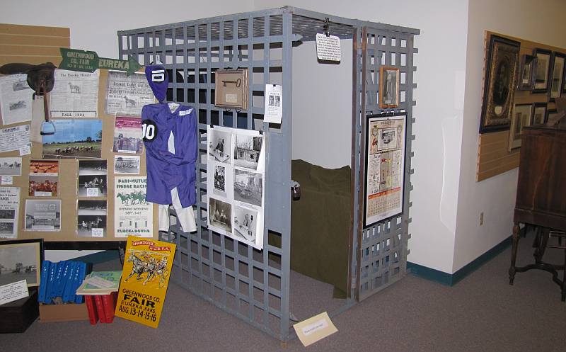 Greenwood County Historical Society Museum - Eureka, Kansas Greenwood County Historical Society in Eureka, Kansas is a significant genealogical resource for people researching ancestors who lived in Greenwood County, Kansas. The Society also maintains an attractive museum which is now open six days a week. Many of displays at Greenwood County Historical Museum are devoted to cattle ranching and oil. There is also the obligatory one room school house display and displays about various former residents of some note. Behind the museum there is a shed with a number of old farm implements, including a couple of implements which were invented by a local rancher. One of the most interesting local exhibits is devoted to Roger Babson and Utopia College which he founded in Eureka shortly after World War 2. Babson selected Eureka because of its distance from probable targets in a nuclear war and he intended to place it in in underground college campus that would be safe from nuclear attack. He believed that central Kansas would have the natural resources such as oil, minerals and grain needed to rebuild following a nuclear war. Although Utopia College never never moved underground or grew very large, the two year college continued until 1969 as the Midwest Institute.