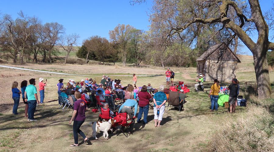 Home on the Range Cabin - Athol, Kansas In 1871 or 1872, Dr. Brewster M. Higley wrote a poem about the tiny cabin where he lived in north central Kansas, close to the Nebraska State Line. He called the poem My Western Home and tucked it away as nothing special. But a neighbor found the poem and convinced Higley to share it with others. The poem was first published in a December 1873 issue of the Smith County Pioneer with the title Oh, Give Me a Home Where the Buffalo Roam. The fiddler Dan Kelley helped set the poem to music and the song soon began a life of its own. As Americans fell in love with the simple song, they added versus of their own, as well as the chorus. There was no "Home on the Range" in Higley's original poem. The song become an icon of the American West and in 1947 Home on the Range was named the official state song of Kansas. The tiny cabin on bank of West Beaver Creek where Higley penned that poem is still standing today. It is in the yard of a private home. THe property has been preserved for visiting by the public, thanks to the Ellen Rust Living Trust which was started by one time residents of the adjacent home. The cabin is kept unlocked and has a small exhibit inside, behind chicken wire. There is also a guest register and they sell a one sheet with the history of the cabin and the song for a quarter (honor system). The Home on the Range site of Higley's cabin was approved for listing on the National Historical Register on March 26, 1973. The Higley Cabin needed restoration and in April of 2011 and campaign began to raise nearly $100,000 for that work. In the first month, over $25,000 was raised, the bulk of that money coming from a concert by cowboy singer Michael Martin Murphey who did a benefit concert at the Prairie Rose Chuckwagon Supper Club in Benton, Kansas. The photos on this page show the results of the restoration and preservation. To reach the Home on the Range Cabin drive north of US Highway 36 on K-8 8 miles, and turn west on the private drive where you see the stone sign. Oh, give me a home where the buffalo roam, Sign directing you off Kansas Highway to the Home on the Range Cabin