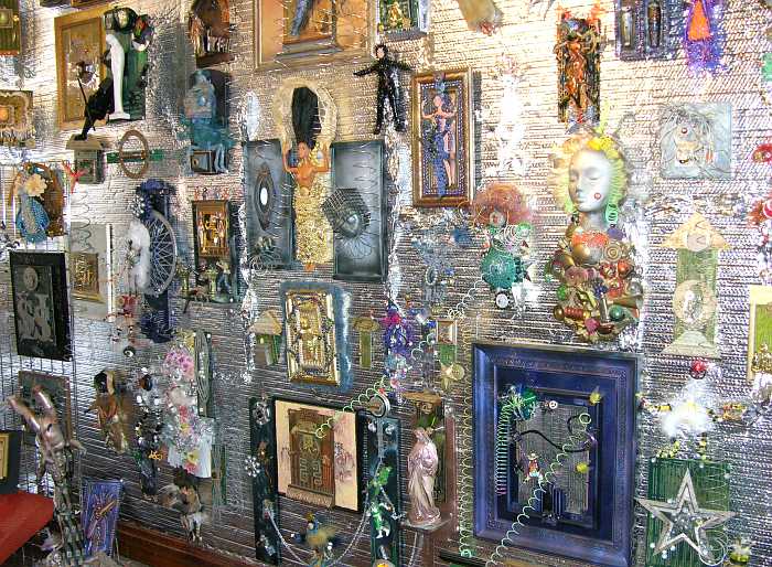 Garden of Isis - Lucas, Kansas Florence Deeble's Rock Garden has been a Lucas, Kansas landmark for over 50 years, but since 2002, the Deeble house has been the home of an interior garden - the Garden of Isis by Mri-Pilar. a visual artist originally from Lawrence, Kansas. The Garden of Isis is 5 rooms of art made from doll bodies, toys, kitchen utensils and other recycled materials. Many of the items are available for purchase. During Fools-a-Palooza, the annual April 1 Lucas Art Day, in 2023, I had a rare opportunity to meet Mri Pilar, whose art I have admired since 2005. It was the first time I returned to the Garden of Isis since 2011 and much of the work had changed over in the past 11 years. Although I've appreciated it from the beginning, I feel the changes may make it more accessible and may broaden the audience. Mri told us about how she began doing this kind of recycled art and the perfect storm which came together to provide her with this space in Lucas. In the intervening years, she has moved from Lawrence to Lindsborg and she no longer drives, so her public appearances are limited.