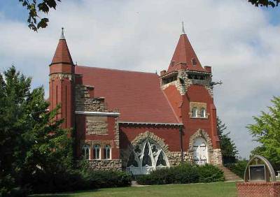 Lady of Perpetual Help Catholic Church is an unusual, castle shaped