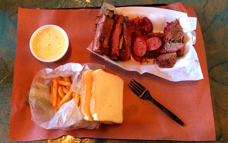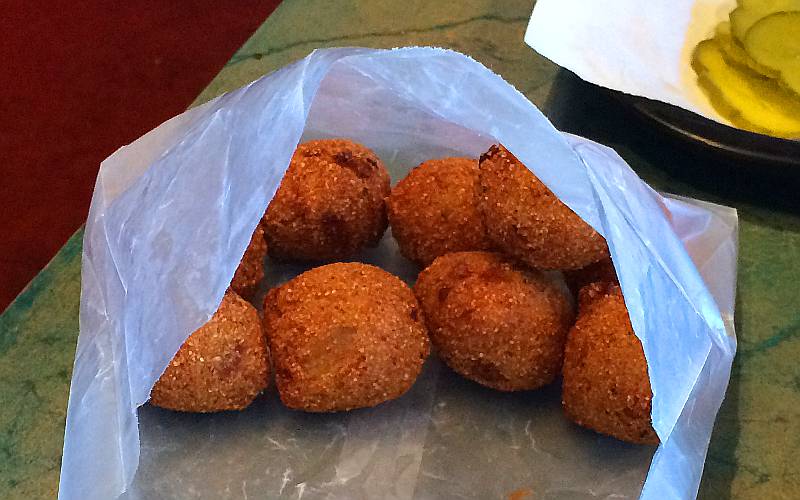 Slap's BBQ - Kansas City, Kansas Slap's BBQ in the Strawberry Hill neighborhood of Kansas City, Kansas has been very popular since opening in June 2014. We first went to Slap's a few months later, but there was a long line standing in the rain. Over time, the dinning area has been expanded with a covered patio and they have learned how to prepare the food much faster. In 2020 they added more outdoor dinning on the roof of an out building and replace the on site parking with picnic tables. Slap's has greatly expanded the hours they are open over the years. We have not had an excessive wait in several years. The restaurant is operated by brothers Mike and Joe Pearce, who are members of the Squeal Like a Pig BBQ competitive barbecue team/ Three members of the team opened the restaurant, though only the brothers are there today. "Slap's" is made from the first letters of Squeal Like A Pig. The team still competes, but not as often as they once did. My favorite item, by far, is the ribs. The St. Louis style cut pork ribs are tender and have an excellent slightly smoky flavor that has been well seasoned with their rub. The sausage is also very good. The large chunks of burnt ends have been the least exciting meat. They taste good, but are more mildly seasoned than is typical in our favorite Kansas City burnt ends. The sauce is the most unusual thing about this barbecue. It is a thin, very sweet sauce like that served with some appetizers in Chinese or Thai restaurants. That standard sweet sauce goes well with the smoked turkey, but on the other meats I prefer the spicy sauce, though the meats are good without any BBQ sauce. The beef brisket is their most popular meat and I enjoy it nearly as much as the ribs.. If you get the pulled pork, ask the person carving the meat to add au jus. The baked beans are meaty, but a bit too sweet for our tastes, but Slap's offers jalapeno pepper slices if you have the beans and I thought the peppers made the beans very good. The fries are lightly battered and the only part of the meal which I don't bother to finish. The cheesy corn is excellent with just a touch of salt. The warm baked potato casserole is the only unique side and is our favorite side, by far. The cashier came around to talk to us during one of our early meals and explained that she was the mother of the brothers who at the start were two of the three original owners. She is a real estate agent and her work schedule provides the flexibility to let her help out during the four hours Slaps was then open each day. She brought us samples of their hushpuppies and the house cheese spread for dipping. The hushpuppies tasted good and added a nice, slightly crispy compliment to the meal.