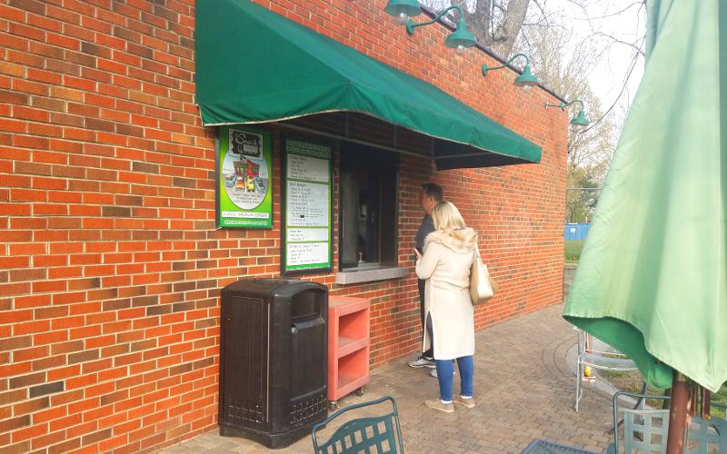 scattered picnic tables, and most meals are purchased to go. The restaurant