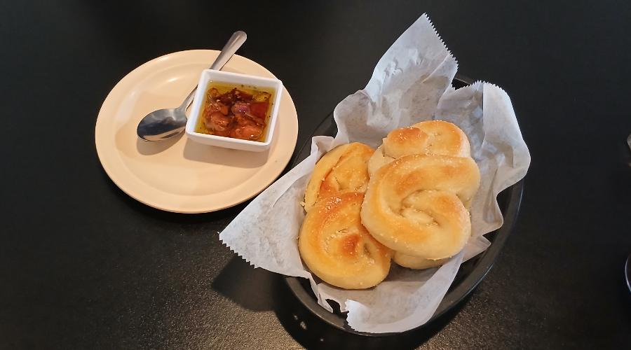 prepared, our server brought out a basket of wonderful garlic bread knots