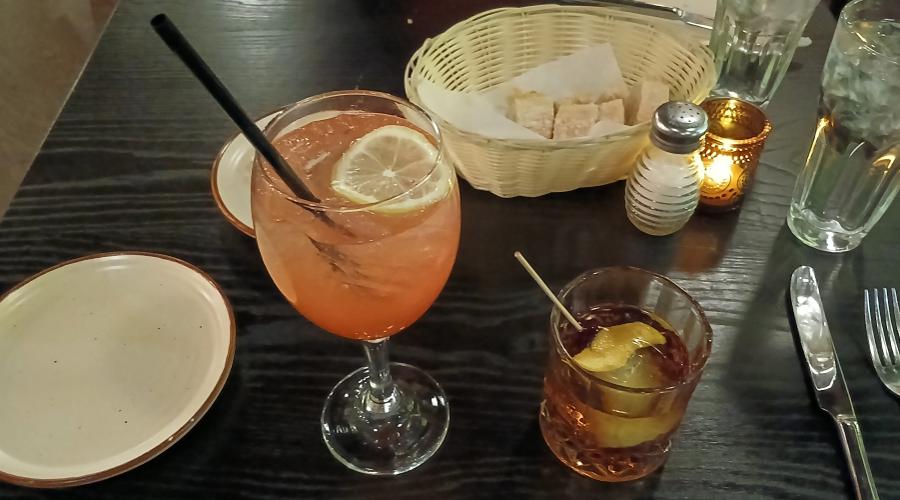 started with two house specialty cocktails, a Maple Old Fashioned and an