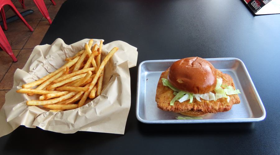 had a pork tenderloin sandwich with French fries, grilled chicken quesadilla,