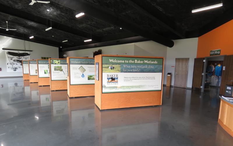 Baker Wetlands Discovery Center - Lawrence, Kansas The Baker Wetlands is a 927 acre nature area on the south side of Lawrence, Kansas. It has over 10 miles of trails, including a nice boardwalk. A new Baker Wetlands Discovery Center opened in September of 2015. The attractive new 11,000 square foot building has a large display area, but at this time it doesn't take long to view the displays. It also contains a research lab and classroom space. The Baker Wetlands were originally used to teach farming to students of Haskell Institute (now Haskell Indian Nations University). Baker University received much of the land of the Department of Health, Education, and Welfare in 1968. Baker University owns a large portion of the land, though small tracts are owned by Haskell, the Kansas Department of Wildlife and Parks, and the University of Kansas. In the years since Baker acquired the land, the previous use has been slowly mitigated, a process which still continues. As of 2017, 278 species of birds, 98 other vertebrate species, and 487 plant species have been identified at the Wetlands. Astronomy Associates of Lawrence holds public meetings at the Discover Center during the school year, on the last Sunday of the month. They are followed by a Public Observing Session.