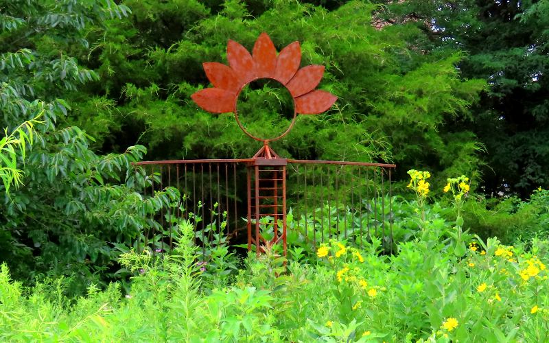 Monarch Watch began on the West Campus at the University of Kansas in Lawrence in 1992. In 2004, they started the Monarch Waystation Program to create gardens that provides food and habitat for the Monarch butterfly population. The international program now numbers 44,000 registered waystations with Monarch Waystation #1 sitting just outside the Monarch Watch offices. The waystations are good for various pollinators and provide locations where monarch can rest and feed during their annual migration. There are several small gardens and plantings near the building including a container pollinator garden, but back to the left are larger garden areas and the pollinator garden that is Waystation #1. Although the space is surrounded by college buildings, it is large enough to take you away from all that and is quite peaceful. We saw no monarch butterflies in the garden, but we saw a variety of other butterfly species as well as may other pollinators. The parking lot is subject to KU parking regulation, but there are three spots reserved for Monarch Watch guests and there are instructions on the sign for how to pay by telephone. The Monarch Watch offices do not stay open for a regular schedule, but are typically open from 10AM - 3PM on week days. It is worth trying the door whenever you are there. On the July Saturday we visited the gardens, we tried the Monarch Watch door and found that it was unlocked. There were a couple of people working. One of them checked if we needed anything and also alerted us to the active bee colony in one of the rooms where the lights were currently turned off. In addition to displays and many beautiful photos of butterflies, we found two rooms with multiple cages of monarchs and also found a woman who was removing tiny monarch larvae from milkweed plants and transferring them to small containers of media. The shelves of the room were lined with more containers with larva and cocoons in various stages of development. You can order one of their monarch raising kits, a monarch tagging kit or milkweed for your own waystation at Shop.MonarchWatch.Org.
