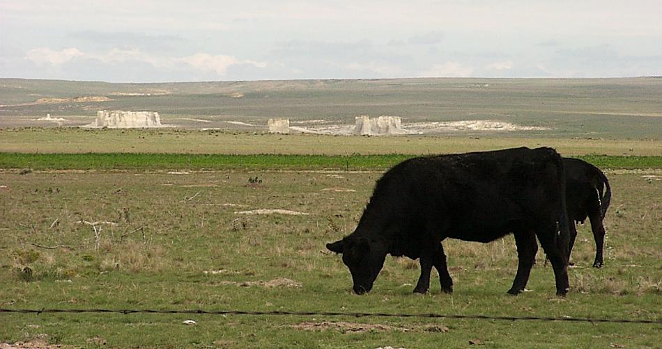 Monument Rocks, the Chalk Pyramids - Kansas Monument Rocks and Chalk Pyramids are names for the same group of rock outcroppings, near US-83 in western Kansas. There are signs at the turn off (6 miles of gravel roads) from both north and south. Monument Rocks can be seen in the distance from highway US-83 if you know where to look. The 70 feet tall sedimentary formations of Niobrara Chalk were created by the erosion of a sea bed which formed during the Cretaceous Period. 80 million years ago, this land was the sea bed beneath the Western Interior Seaway which covered much of what is now North America. This limestone is quite soft and changes in the edges of the rock formations can be seen from year to year. Please be careful not to harm the rocks. Like Castle Rock Badlands, Monument Rocks are on private range land, but thanks to the owners, they are open to the public during daylight hours. Visiting Chalk Pyramids after dark is explicitly prohibited. Digging or carving into the chalk formations or flying drones is also prohibited. Please carry out your trash and remove any that you find. The United States Department of the Interior designated Monument Rocks Natural Area as a National Natural Landmark in 1968. Since that time, 4 other National Landmarks have been designated in Kansas: Big Basin Preserve, Baker University Wetlands, Baldwin Woods and Rock City. Eight Wonders of Kansas In 2007, the Kansas Sampler Foundation selected Monument Rocks as one of the Eight Wonders of Kansas. Other sites selected as the Eight Wonders of Kansas include the Cathedral of the Plains, Kansas Cosmosphere, Castle Rock, Tallgrass Prairie National Preserve and the Eisenhower Presidential Library.