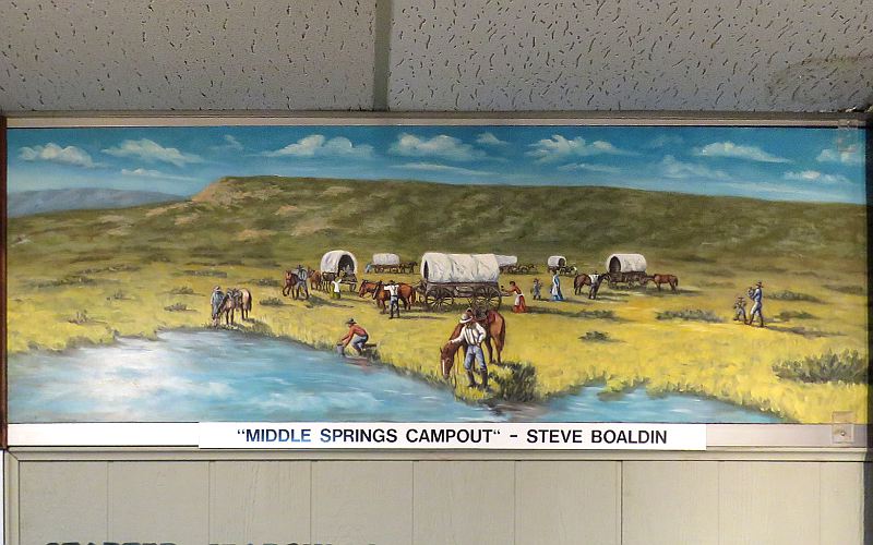 Morton County Historical Society Museum - Elkhart, Kansas The Morton County Historical Society Museum in Elkhart, Kansas is one of the larger and more interesting local historical museums in Kansas. It has a lot to offer even to those who don't have a connection to the community. A few of those things are mentioned below. The museum says that Morton County, Kansas is the smallest county in the world to have not only one, but two Olympic Medal Winners. Glenn Cunningham ran on the 1932 and 1936 U.S. Olympic teams, winning a silver medal in 1936 in the 1,500-meter race. In 1938 he set the indoor mile world record with a time of 4.04.4 minutes. Thane Baker captained the silver medal in the 200 meters during the 1952 Olympics held in Helsinki, Finland. In Melbourne, Australia, in 1956 he won the gold medal as captain and member of the 400 meter relay team, a silver medal in the 100 meters, and the bronze medal in the 200 meters. In addition to exhibits about their exploits, when we last visited the museum in 2025, Thane and his daughter, Catherine Baker Nicholson were selling and signing copies of "Running in Borrowed Shoes." Catherine's book is devoted to Thane, the oldest living American Track & Field Olympic gold medial winner. The museum is filled with murals and other art by local artists. I particularly like the paintings of local scenes and history that are around the top of the walls in the first room of the museum. A story I would like to know more about is that of O. K. Webster of Salina, Kansas, who built a circus band wagon and horse drawn hearse to be used for his 10 mile funeral procession in 2001. It was his wish that the wagons be donated to the Morton County Historical Museum, Another interesting story that includes much more information, is that of Larry B. Tudor, who set several world records for hang gliding. Although he is from California, in 1990 he flew a hang glider from Hobbs, New Mexico to Elkhart, Kansas, a distance of 303 miles. The flight took over 8 hours at an average speed of 35 miles per hour. Elkhart had been Larry's goal when he took off, and although the Smithsonian Institute wanted to purchase the glider, he wanted it to remain where he set the record. The Dirty Thirties room devoted to the "Dust Bowl" period of severe dust storms that greatly damaged the Great Pains in the 1930s. The exhibit just opened in 2025.