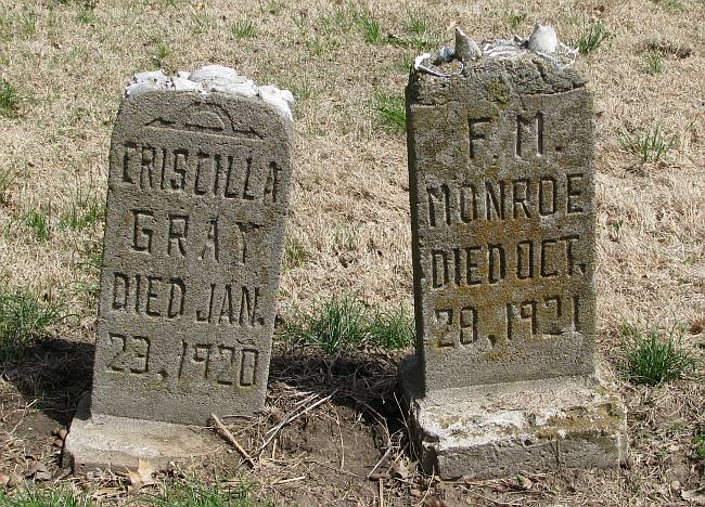 Next on the Oak Hill Cemetery tour is the grave of George Nash Walker (1872-1911), a turn of the century vaudeville entertainer. I was unable to locate the modest individual marker, but its location may be incorrectly marked on the map. If you locate it, please let me no exactly where it was. Near George Walker's burial are three hand made grave markers with shells embedded in their tops. They are not where they shown on the map, but just a little farther east, across the roadway.