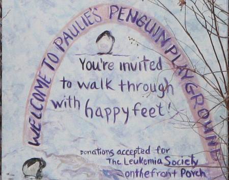 Paulie's Penguin Playground The Craig family Christmas display started off in 2004 with 15 penguins and a few Christmas lights, but has grown to nearly 150 lighted figures which fill most of his yard at Mur-Len Road & Indian Creek Parkway in Olathe, Kansas. In 2007 it took a crew six days to set up the Christmas display. Many of the figures move, some play music, and there are even penguin videos playing on the roof. This is the largest single display in Johnson County, and one of the largest Christmas Displays in metropolitan Kansas City. This is a Christmas display that you will want to get out of your car and walk through. And I think you will be blown away. Visiting the Penguin Playground is free, though you may leave a contribution to benefit the Leukemia and Lymphoma Society. Through 2021, Paulie's Penguin Playground has raised over $87,000 for the Leukemia Lymphoma Society. Note: After 20 years, Paul Craig has announced that 2022 is the final year for Paulie's Penguin Playground. This display has dominated three months of their life every year and he and Cindy are ready for a break. They hope to raise at least $13,000 for the Leukemia Lymphoma Society in this their final year. I first met Paul and Cindy in 2008 and will be sorry to see this end, but they have earned the chance to get the quarter of their lives back! They hope to find a non-profit which might continue the display in the future. The Paulie's Penguin Playground is even worth visiting during the daytime, but for full impact, you will want to visit this Christmas display after dark. Don't be surprised if this in the only place where you see snow, the Penguin Playground has its own snow making machine. Before leaving Olathe, tour more Kansas City Christmas Displays.