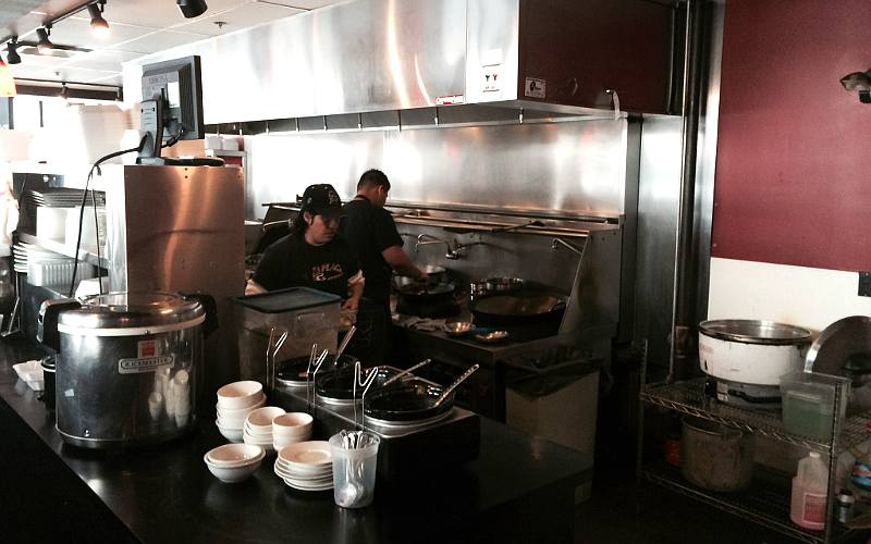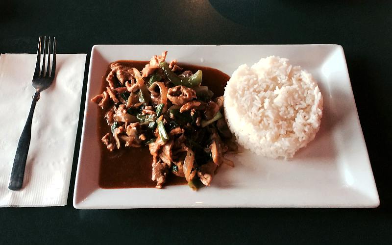 Wai-Wai Thai Place Express - Overland Park, Kansas Archive Page only, permanently closed in May 2018. Wai-Wai Thai Place Express is the Overland Park, Kansas fast food style operation by the Kansas City area Thai Place chain of restaurants. Wai-Wai serves good, inexpensive Thai food, fairly fast. You order and pay at the counter, are given a glass to get your own beverage and the food is brought to your table in about 10 minutes. The Thai spicy stir fried chicken has very good flavor. It is not "hot" even when ordered that way, but you can make up for that with a few ladles of the "Thai chilies" in fish sauce, which heats it up nicely. There is a small sauce bar next to the soda machines. Another good choice is the Moo Phad Phet (stir fired pork with mushrooms, bell peppers, jalapenos, onions and scallions in spicy red curry sauce served with jasmine rice. The flavors combine very nicely. For dishes which are spicy hot when ordered that way, I recommend the Thai Place Shrimp and the Spicy Basil wings appetizer. I've enjoyed every dish I have had at Wai-Wai, but I think I would enjoy the chicken laab (minced meat tossed with fresh mint, red onions, dried chili, scallions, cilantro and fresh lime served with fresh cabbage) more without the mint, but it is still good. The miniature garlic pork rib appetizer (marinated pork ribs, fried crisp and served with sriracha sauce) is also tasty. With the exception of the price of a couple of items, the Wai-Wai's menu has not changed in several years as of this writing in September 2017. The prices on all dishes are reasonable, and the appetizers are particularly a good price, with all of them under $6 and several of them under $4.