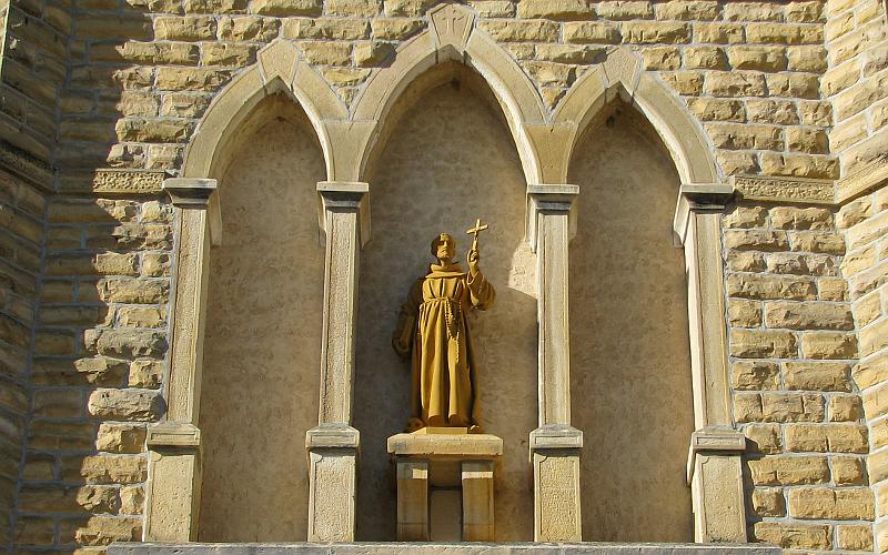 St. Francis of Assisi Catholic Church - Munjor, Kansas St. Francis of Assisi Catholic Church in Munjor, Kansas has a storied past, starting with a free standing cross, which was erected by German speaking immigrants from the Volga area in southern Russia. That cross served as a place for worshipers to gather, until the first frame church was constructed in 1878. The congregation soon outgrew the first structure and built a native stone church which was dedicated in 1890. That church was enlarged in 1913. On February 5, 1932, St. Francis of Assisi Catholic Church was destroyed by fire, but over time, the building was rebuilt with almost the same external appearance. The steeple which once stood atop the stone tower at the front of the church was never replaced and the interior columns which once supported the ceiling were replaced by a vaulted ceiling. St. Francis of Assisi Catholic Church is only open during the mass, but you may be able to schedule an interior visit by calling (785) 625-5314. The building appears very well maintained and the congregation is justifiably proud of their church.