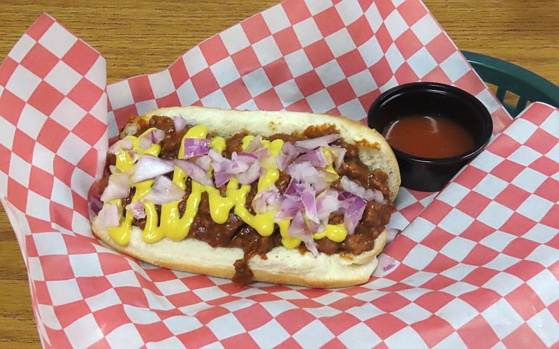 Thomas' Taste Of Chicago - Junction City, Kansas Archive Page Only. Closed in the fall of 2025. Thomas' Taste of Chicago opened in Junction City, Kansas in 2017 and quickly developed a reputation for good food and the only Greek food in Junction City. The restaurant is in two store fronts, with one having the kitchen and the counter where you order and the other having the dining room. The owner is attentive as customers come in and is quick to ask if people have been there before and telling first time customers about the menu highlights. He says the two most popular dishes are the gyros and the Chicago Burger, which he describes as the best hamburger in town. The Chicago Burger was something I have never hear of before and sounded a little unlikely, topped with gyro meat, cheese, and tzatziki sauce. Thing is, it is a great burger these ingredients go together well and is being added to our Kansas Best Burger List. While it isn't known as a Chicago Burger in Chicago, it is something that can occasionally be found. The Chicago Dog is good, but doesn't have the bright green pickle relish I am used to them having. I also couldn't taste or see celery salt, though it was listed as an ingredient. There were 4 kinds of brownies available: cookie brownie, peanut butter, cheese cake and caramel fudge. I thought the peanut butter brownie was just OK. I my most recent visit, I had the chili dog. I lived in metropolitan Detroit for 3 years and have a strong opinion of what a Coney Island hot dog should be like and this one was great. It could compete with the best of them in Detroit. Only thing is they don't serve French fries, so I couldn't have chili fries as well.