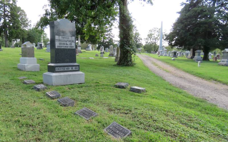 It has 10 large limestone mausoleums in a variety of styles of architecture,